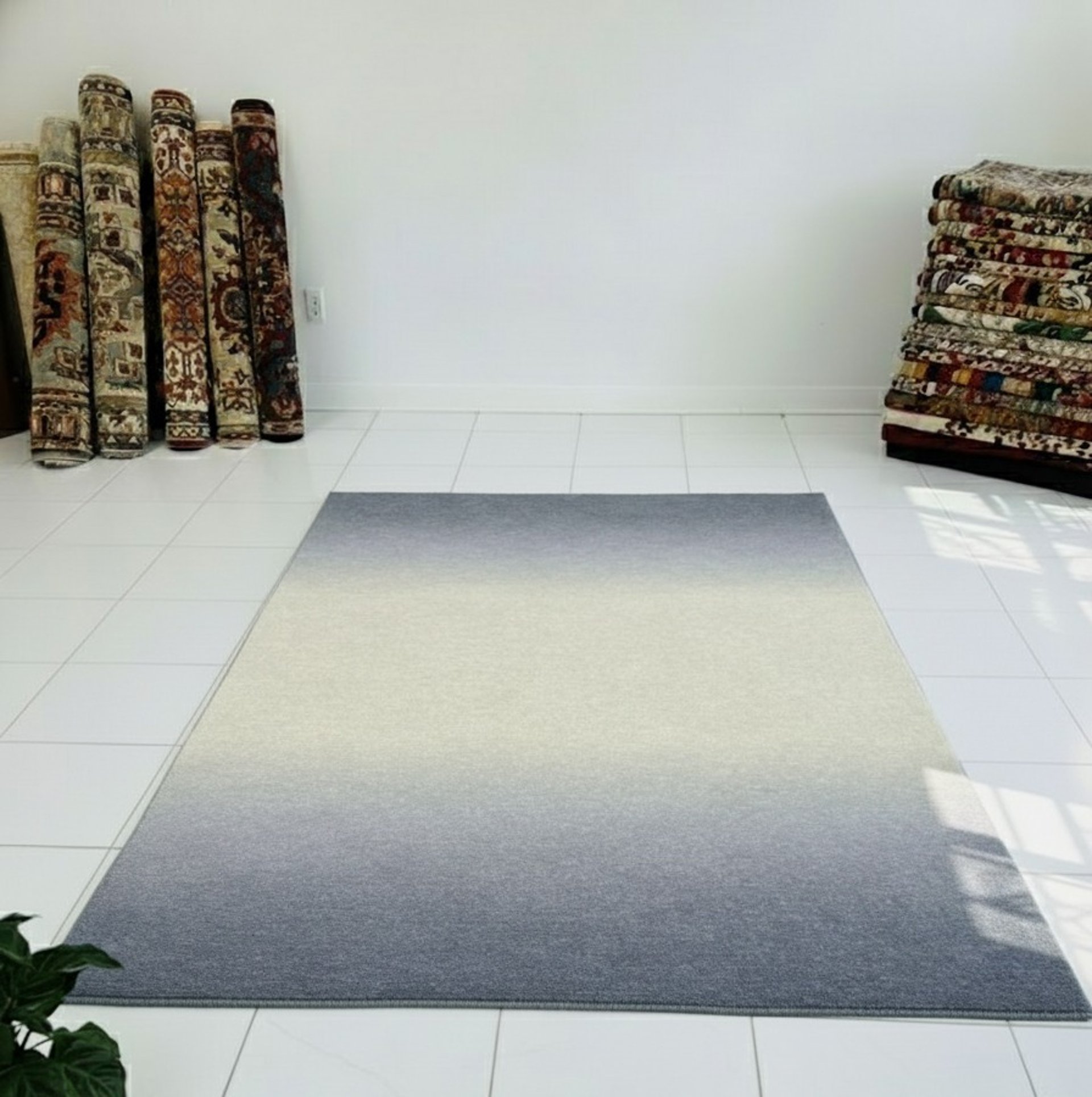 The Ombre rug is a standout among our refined custom rugs, featuring a seamless gradient that transitions from deep slate-blue at the edges to a luminous creamy ivory center. This minimalist design uses a soft horizontal color bleed to create a tranquil atmosphere reminiscent of a misty horizon or calm seascape. Its clean, borderless aesthetic offers modern versatility, while the dense, high-quality weave ensures a plush, uniform texture that beautifully showcases the subtle tonal shifts across the entire surface.