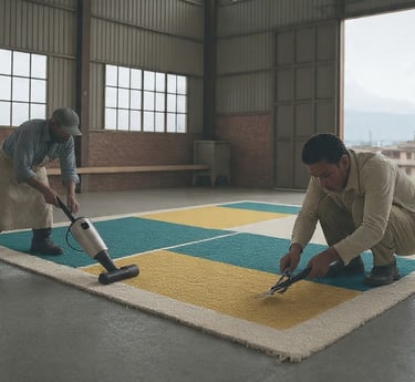 Finishing and Reinforcement: Once trimming is completed, the carpet's edges are meticulously cleaned and reinforced to prevent fraying. This step ensures exceptional durability and lasting strength. A final quality check guarantees each carpet meets our stringent standards before leaving the workshop.